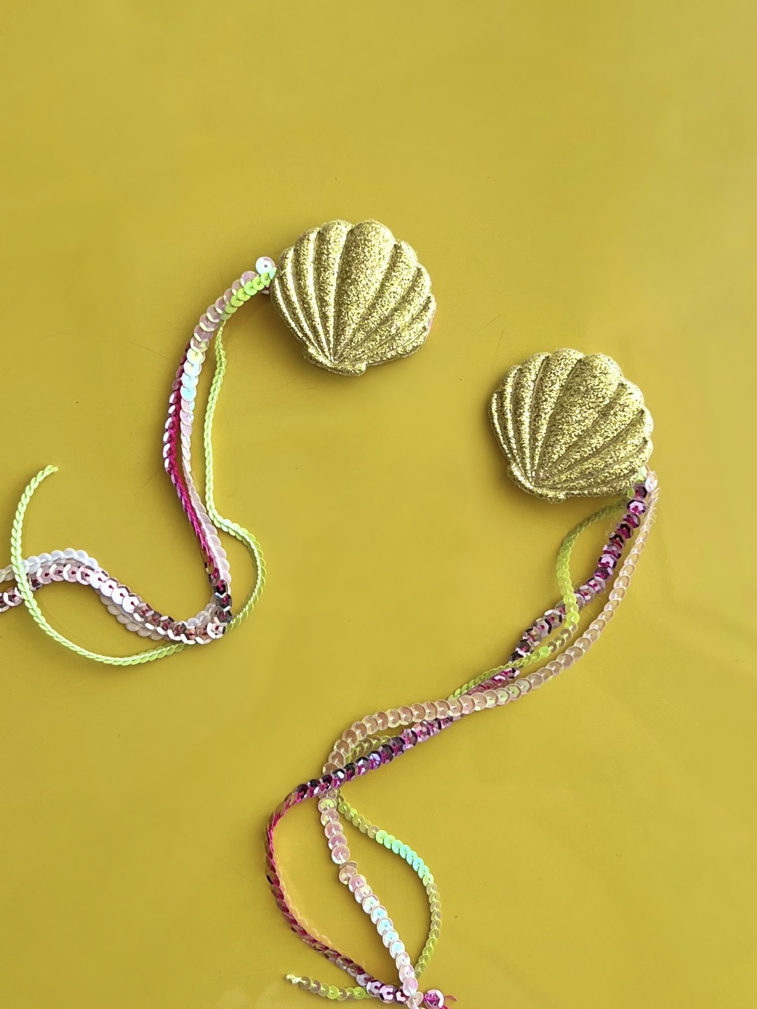Kit composto com duas presilhas bico de pato com aplicação de corações metalizados e penduricalhos.