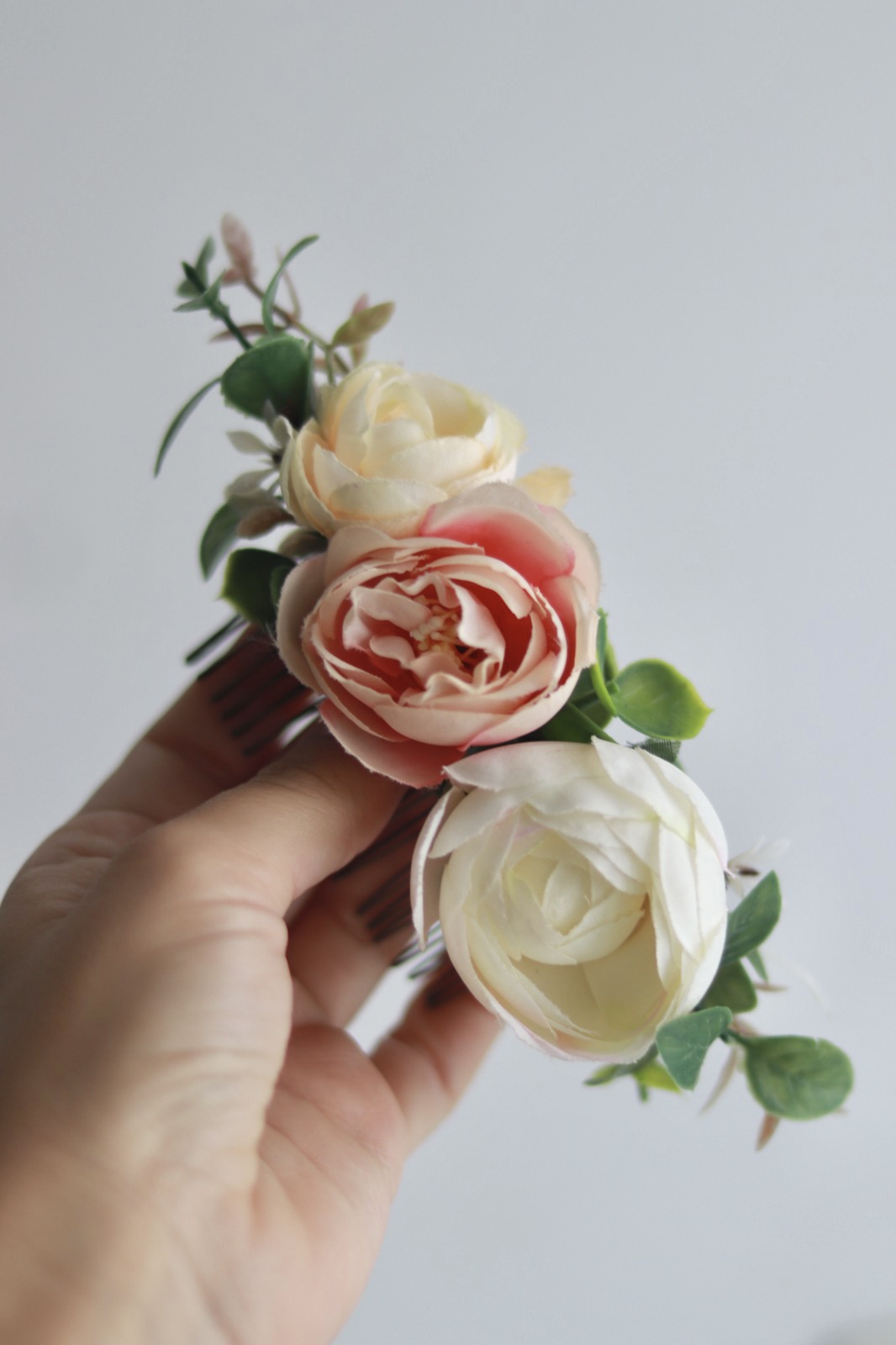 Pente de metal com ampliação de folhagens e flores permanentes.
